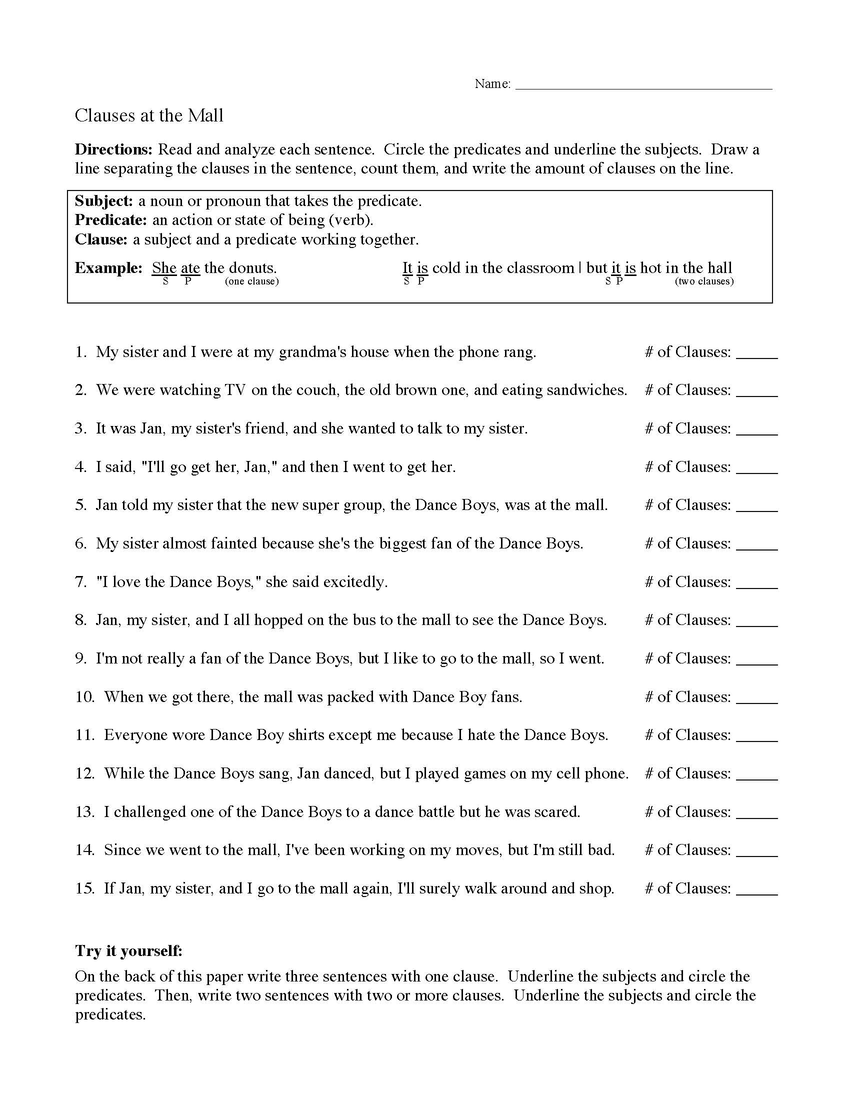 Clauses And Phrases Language Arts Worksheets And Activities