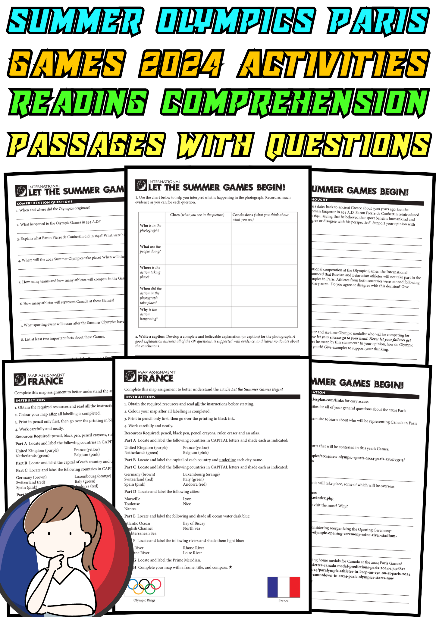 Paris Summer Olympics 2024 Sprint Into The Fun Reading Comprehension Passages Texts Questions Teaching Resources