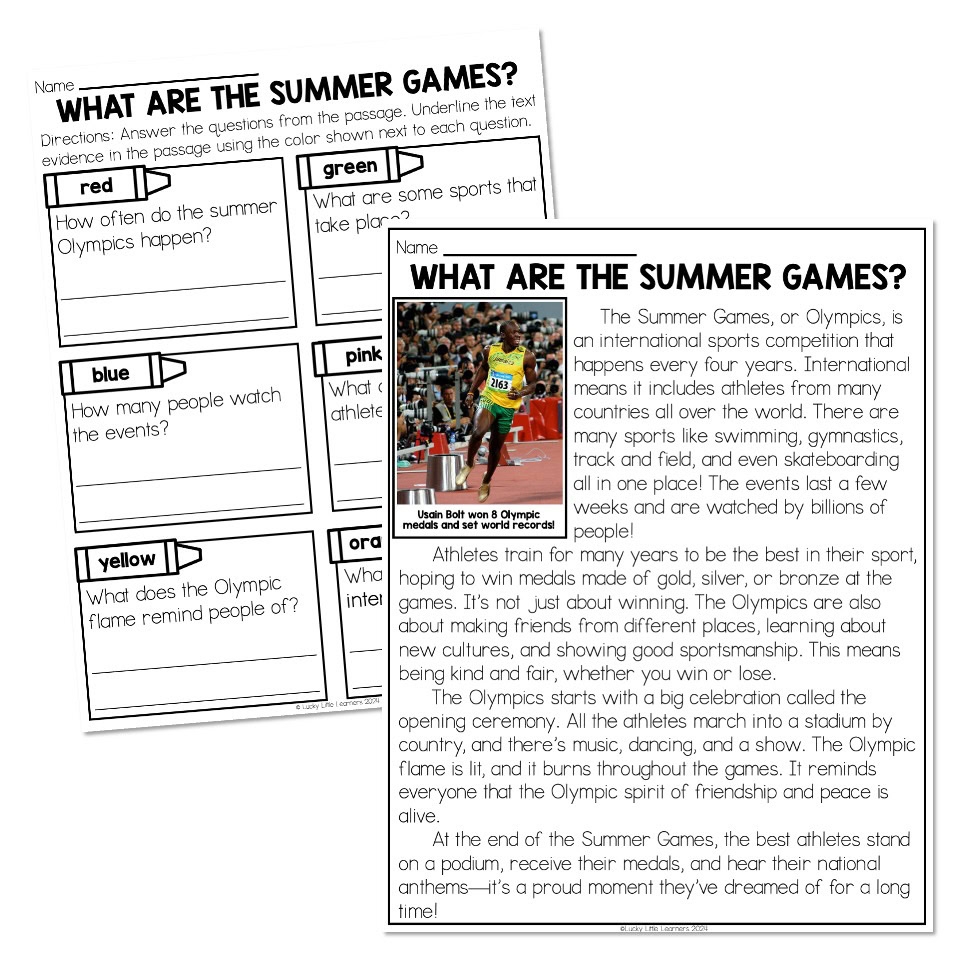 Summer Games Nonfiction Reading Passage And Questions What Are The Summer Games Lucky Little Learners