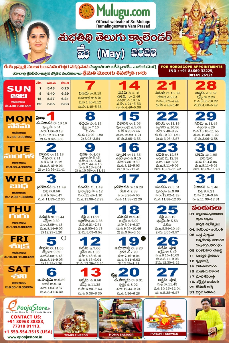 As you can see, May is a month filled with spiritual significance and opportunities for celebration in the Telugu calendar. Make sure to mark your calendars and participate in these festivals to experience the rich cultural heritage of the Telugu community.