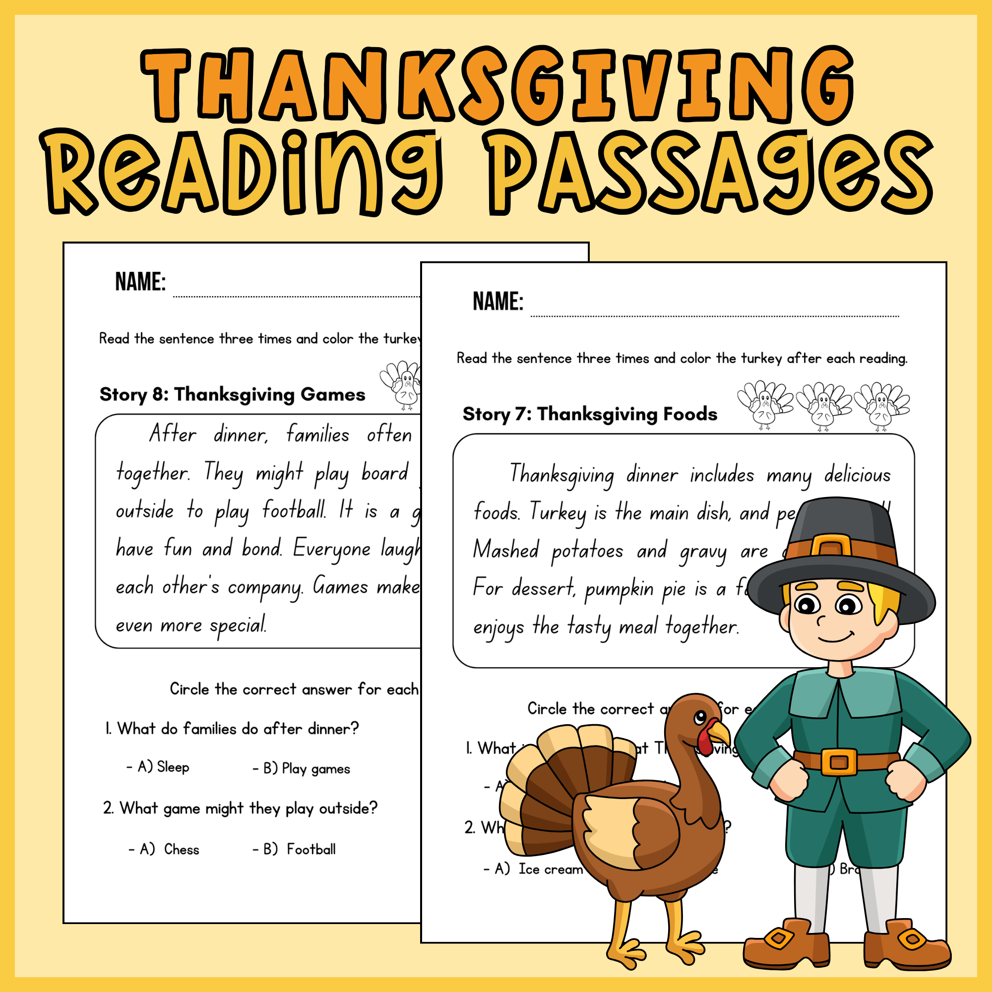 Thanksgiving Reading Comprehension Passages And Activities