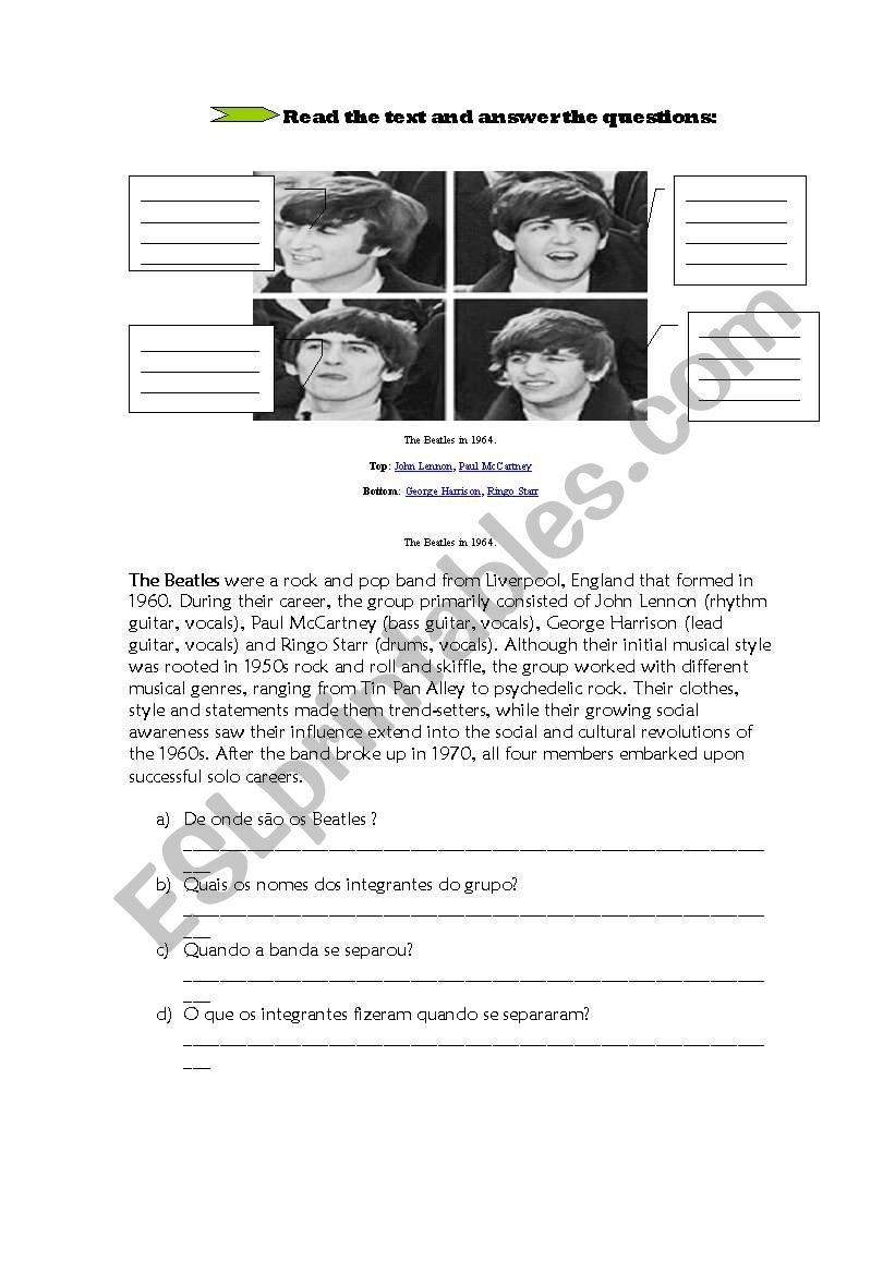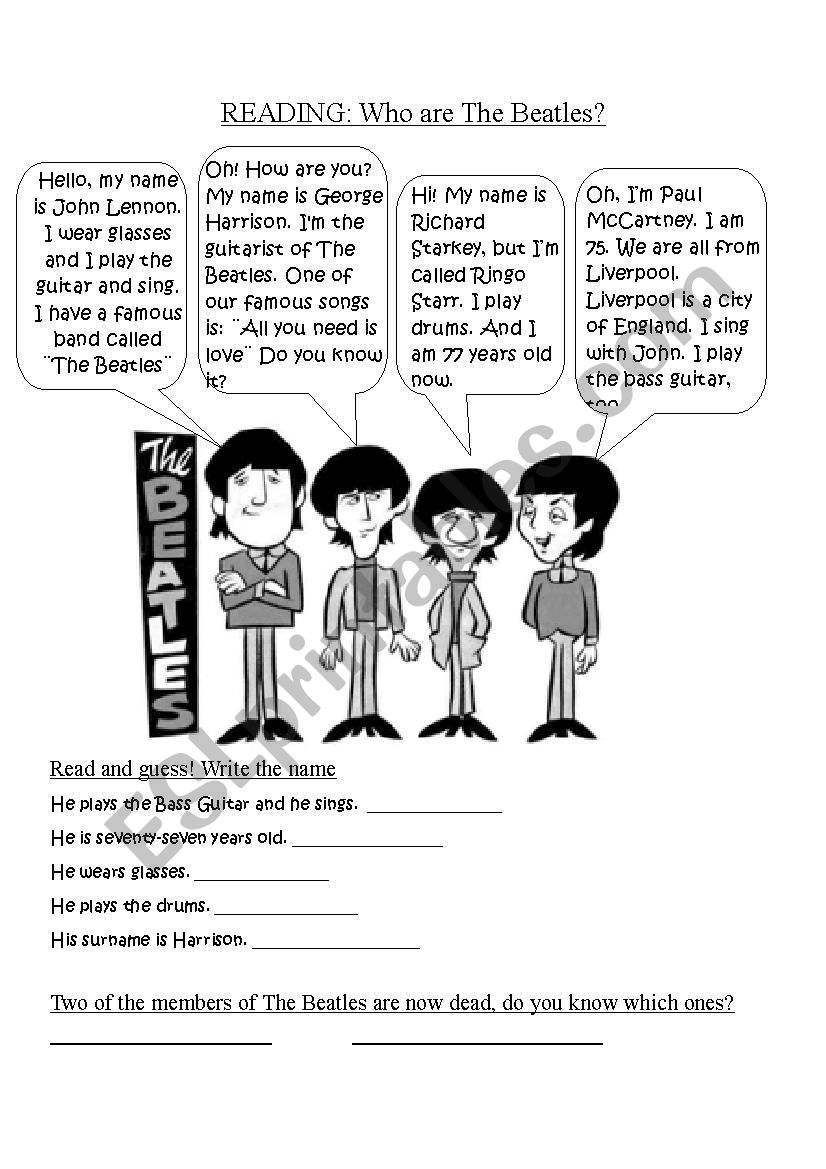 The Beatles Reading And Song ESL Worksheet By Katia Del Pilar