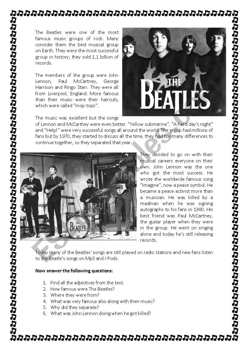 Reading Comprehension The Beatles Solutions Made By Teachers