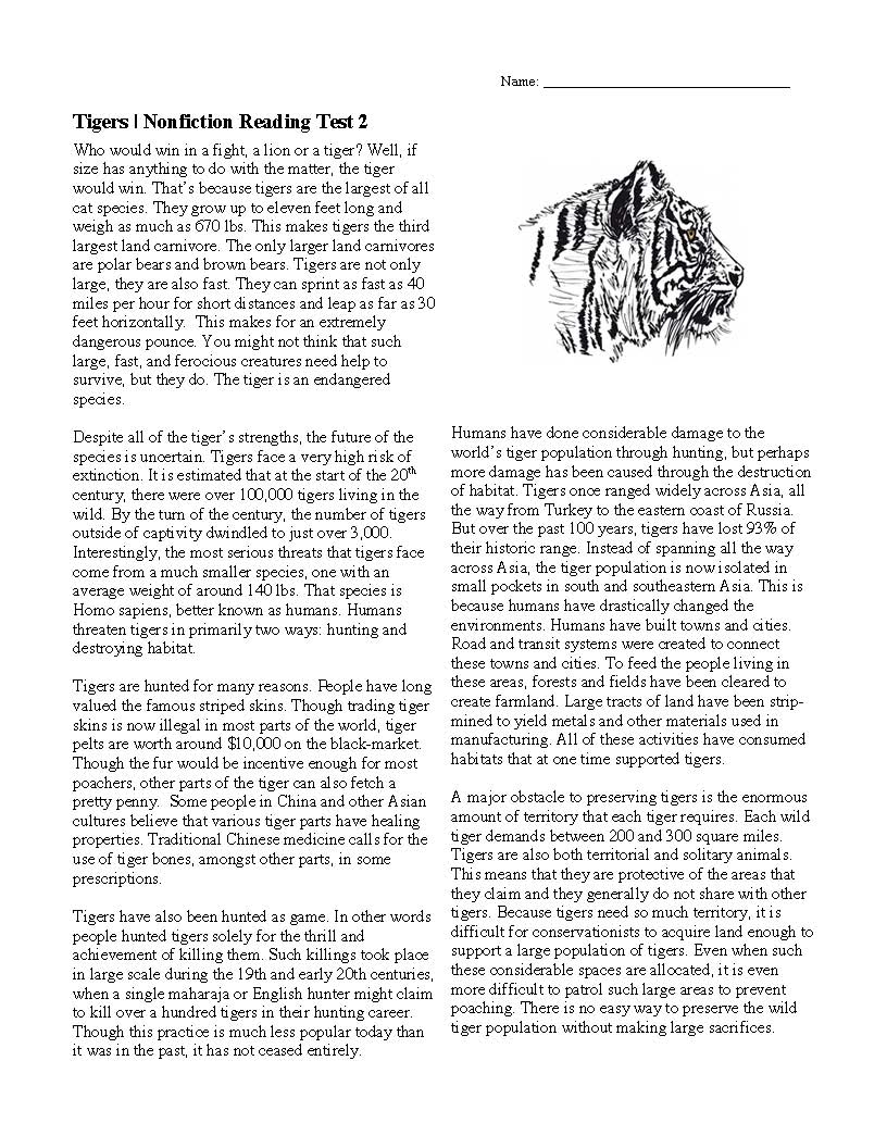 Tiger Reading Comprehension Worksheets: A Fun Way to Improve Reading Skills