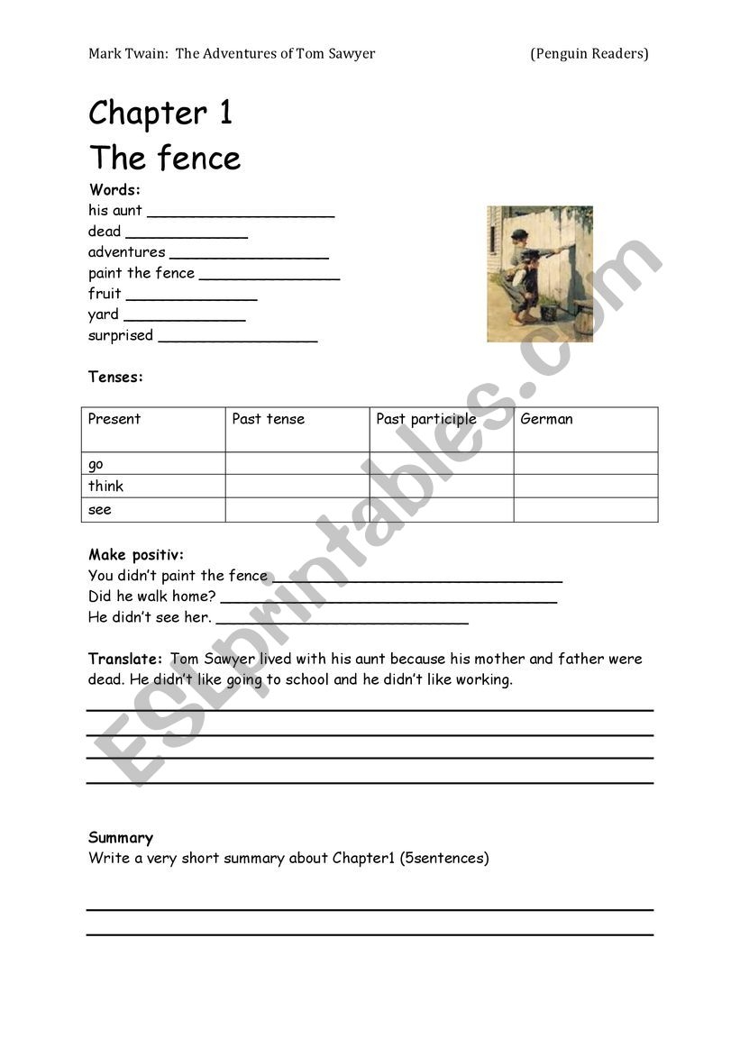 Tom Sawyer Chapter 1 ESL Worksheet By Zefirette