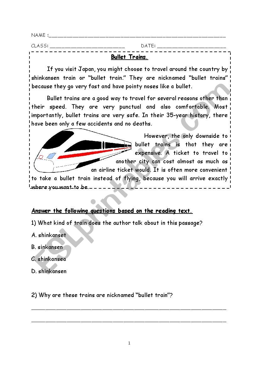 Reading Comprehension Transportation ESL Worksheet By ET Afrah
