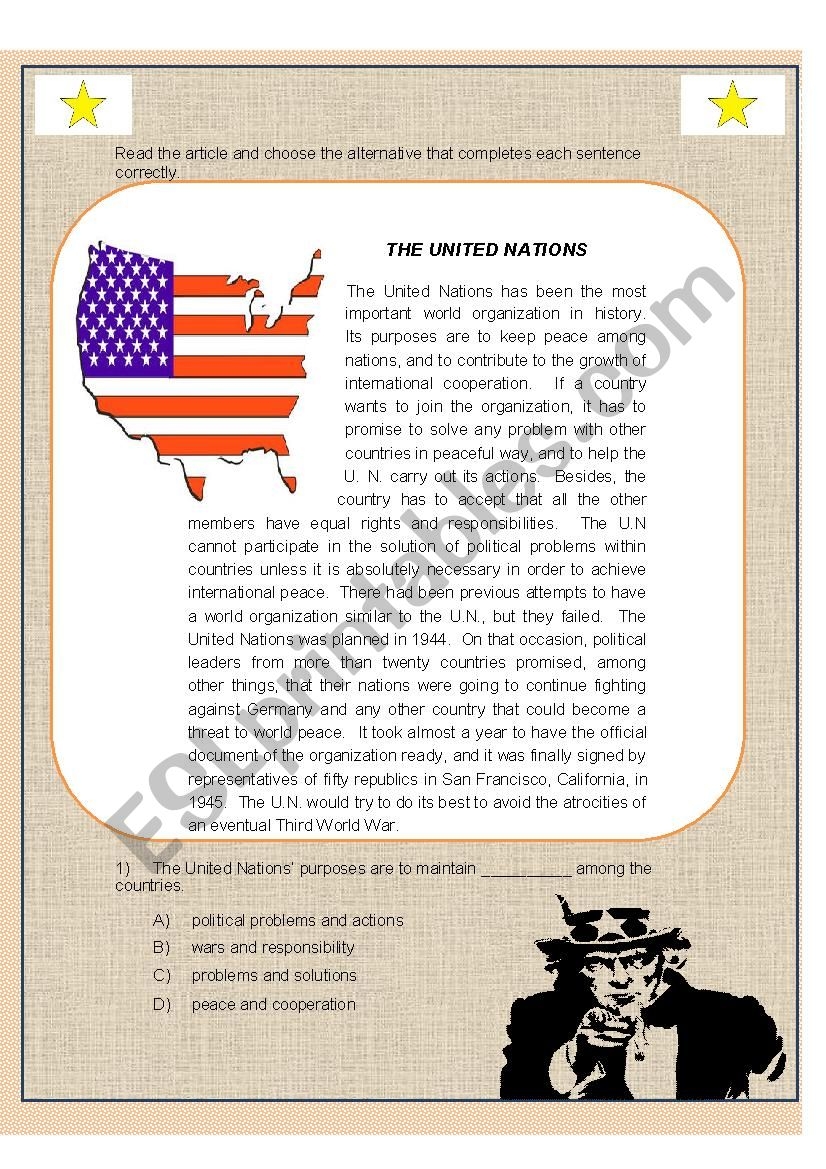 The United Nations Reading Comprehension ESL Worksheet By Pirchy