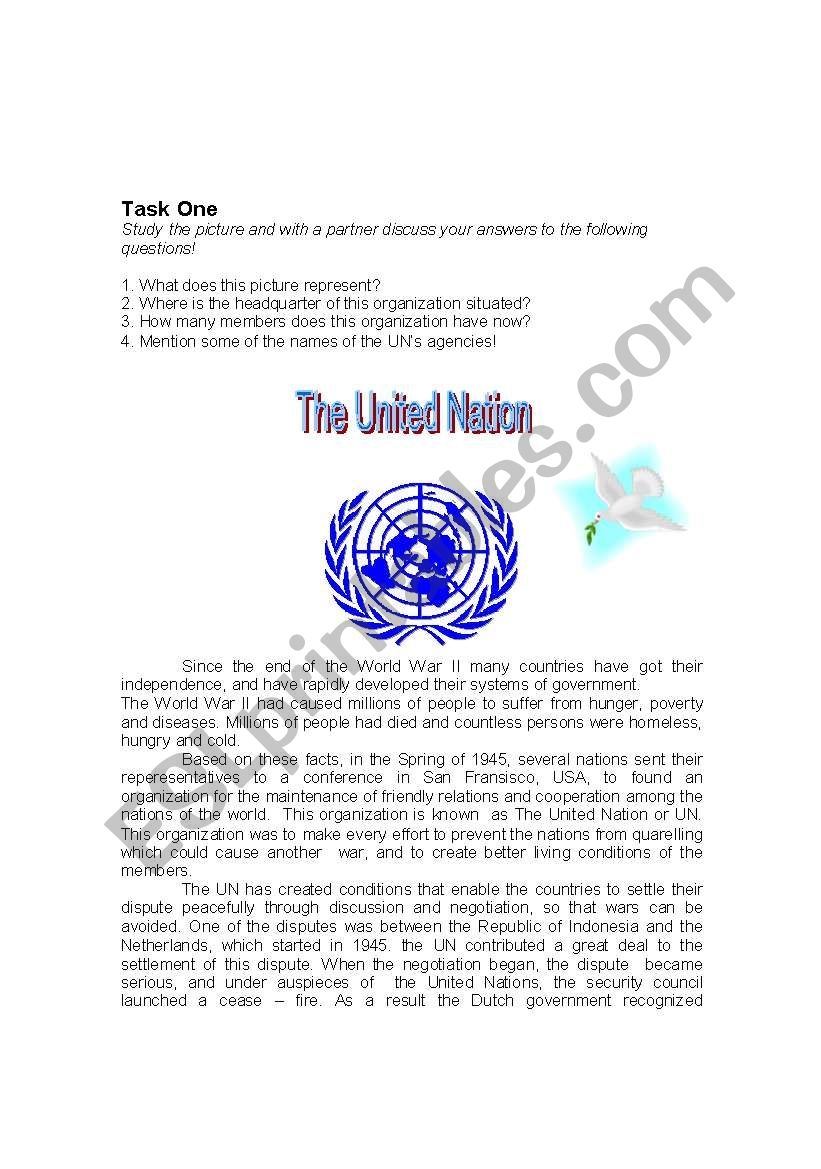 The United Nations Reading Comprehension ESL Worksheet By Zhlebor