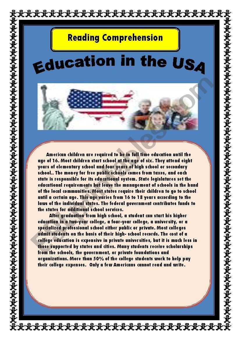 Education In The USA Reading Comprehenson ESL Worksheet By Zizou27300