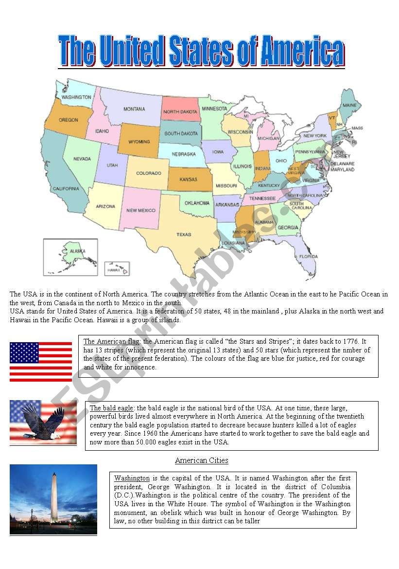 The USA Reading Comprehension ESL Worksheet By Chiaras