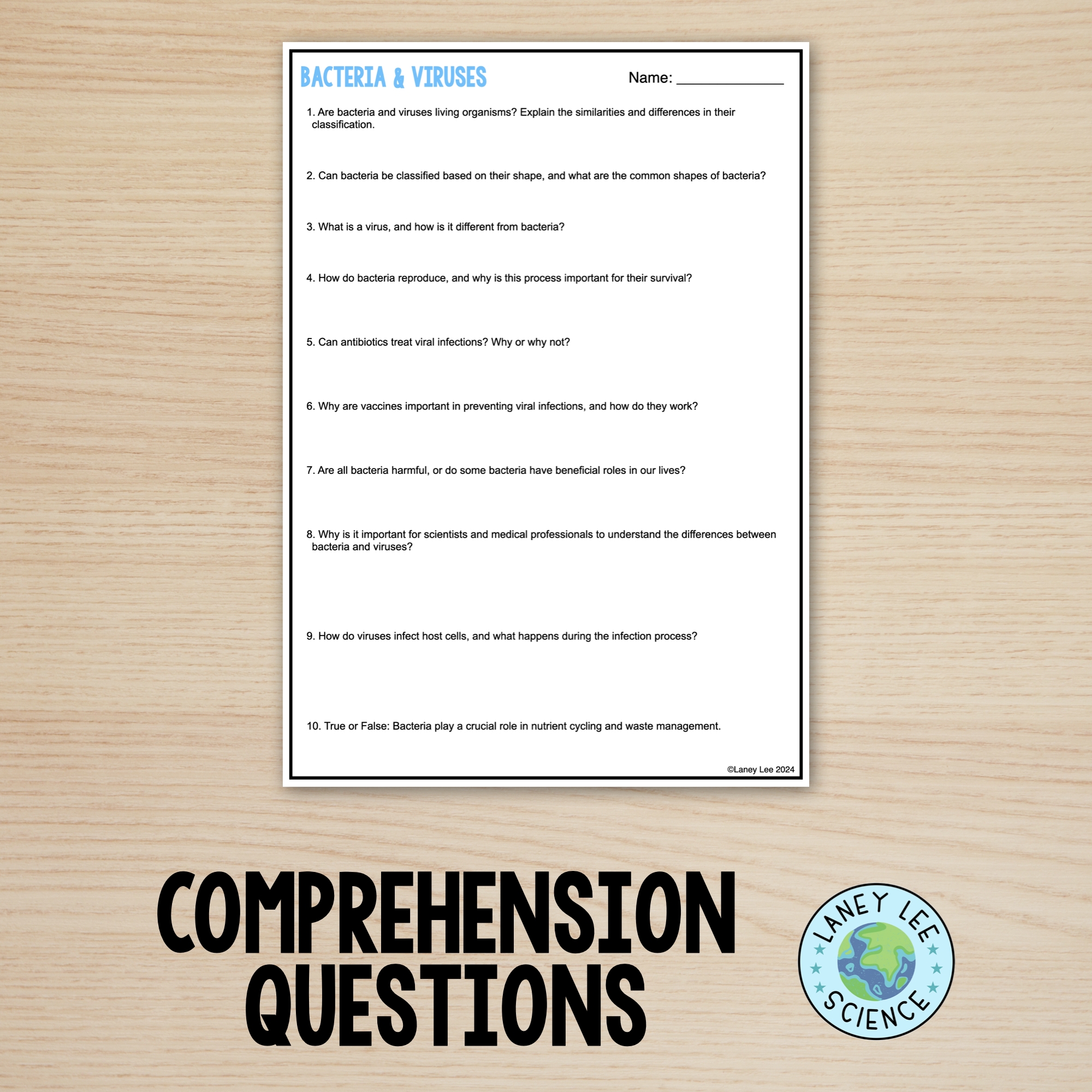 Bacteria And Viruses Reading Comprehension Worksheets Laney Lee