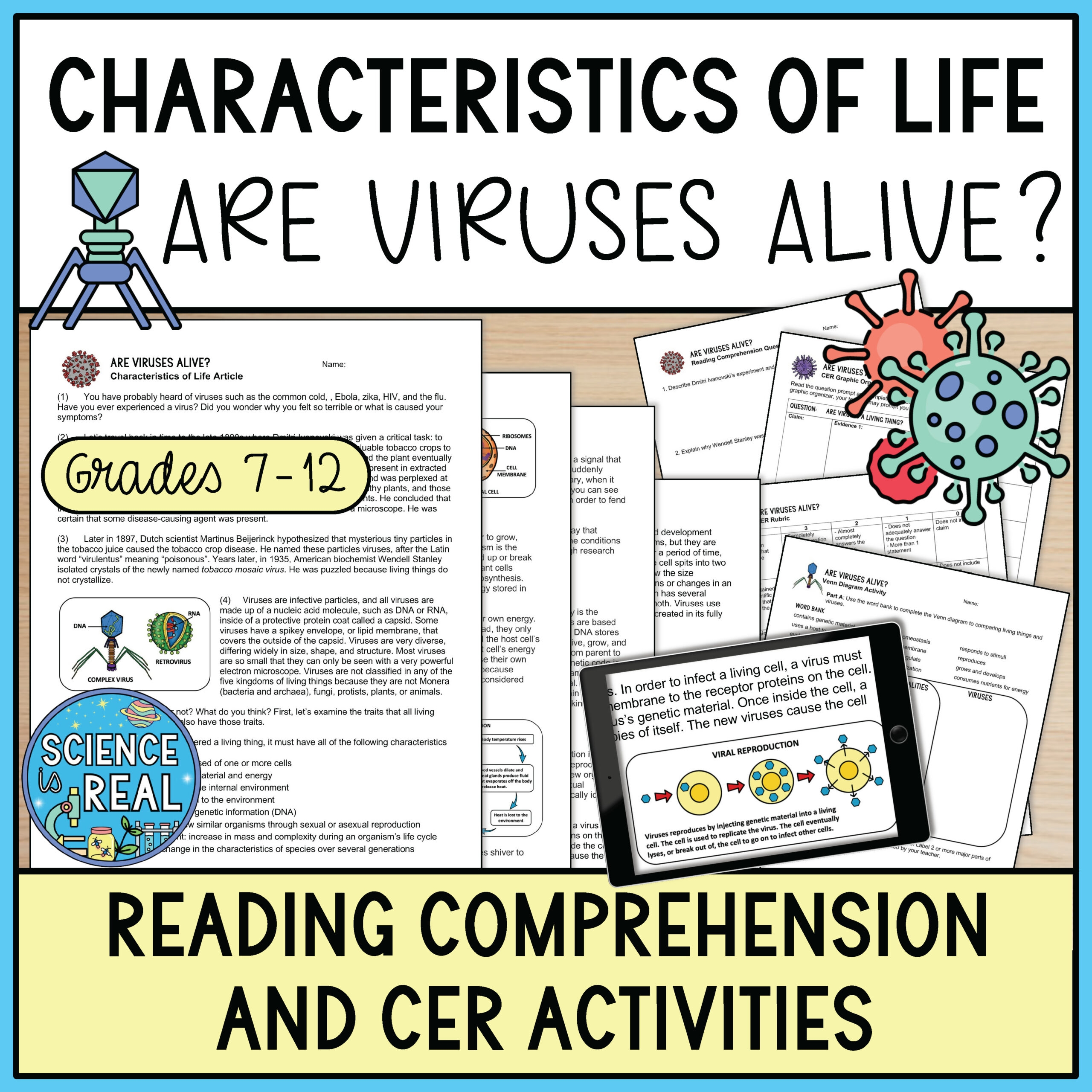 Characteristics Of Life Are Viruses Alive Reading Comprehension And CER Activities Classful