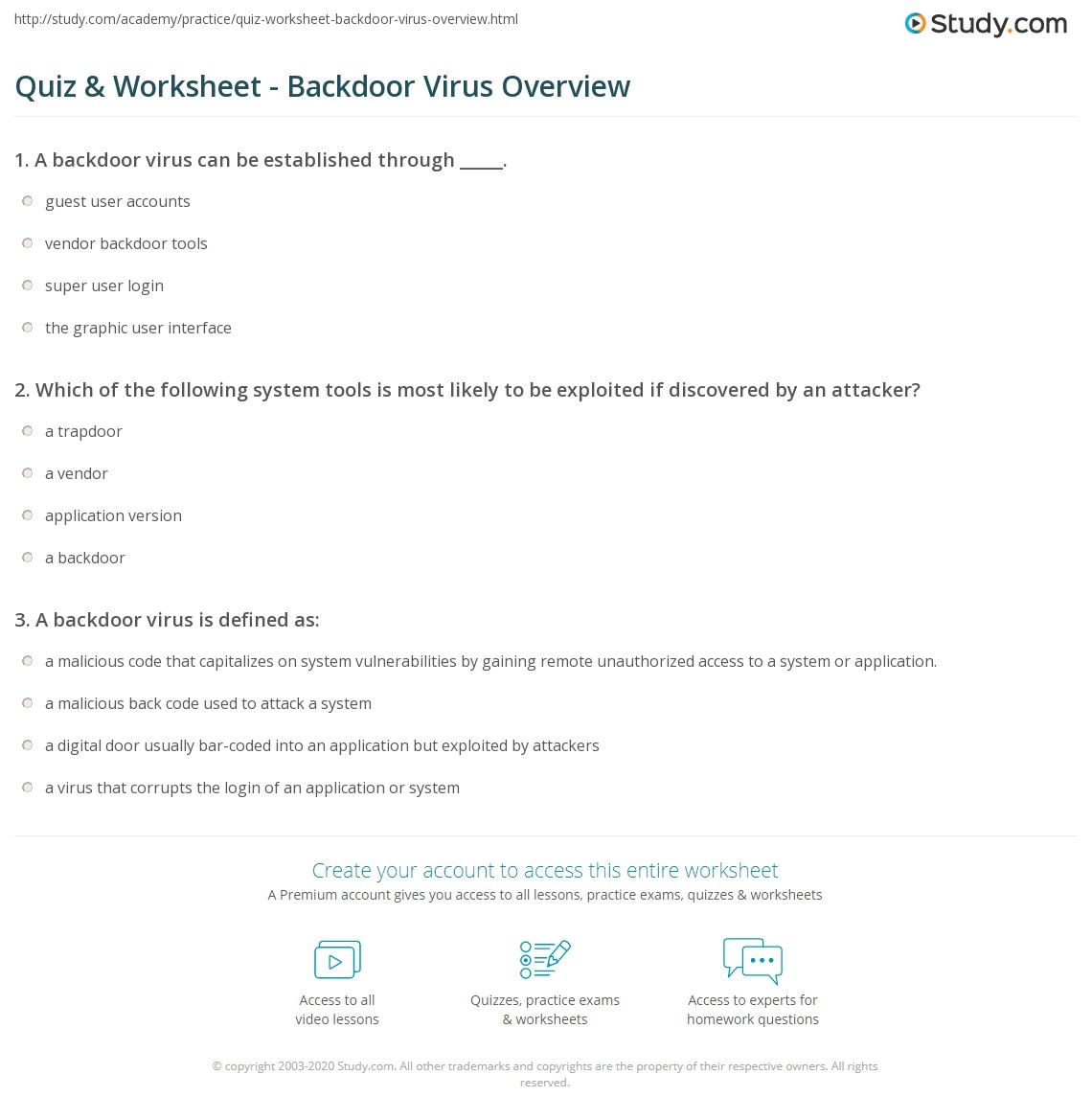 Quiz U0026 Worksheet Backdoor Virus Overview Study