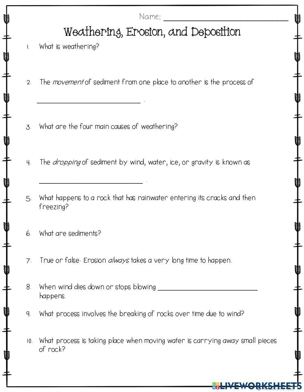 Weathering Erosion Deposition Worksheet Live Worksheets Worksheets Library